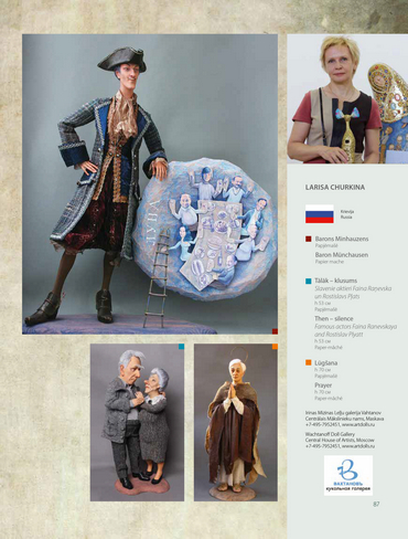 Отдельное место занимают работы замечательного российского художника Ларисы Чуркиной. Лариса мастер портретной художественной куклы. На выставке зрители смогут увидеть образы Владимира Высоцкого в роли Глеба Жеглова, Олега Янковского в роли Барона Мюнхгаузена, Зиновия Гердта, Вячеслава Тихонова.
